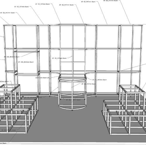 Before any sign off, all concepts were drawn up and an animated 3D render was produced, so that the Bosta team could see their stand “brought to life” and ensure they were thrilled with it before it was even built.