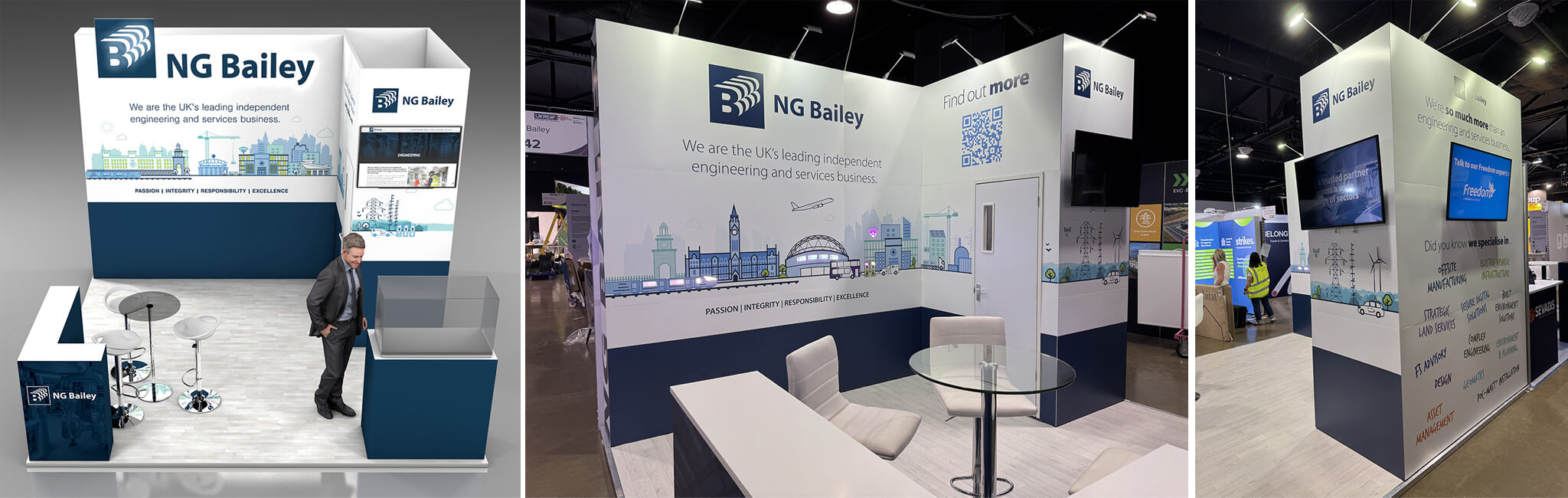As part of this project we provided full installation and personal hand over to ensure the NG Bailey team were happy with the stand before we departed. Upon breakdown we will store the graphic panels in preparation for their next event, minimising on waste and keeping the stand build as sustainable as possible.